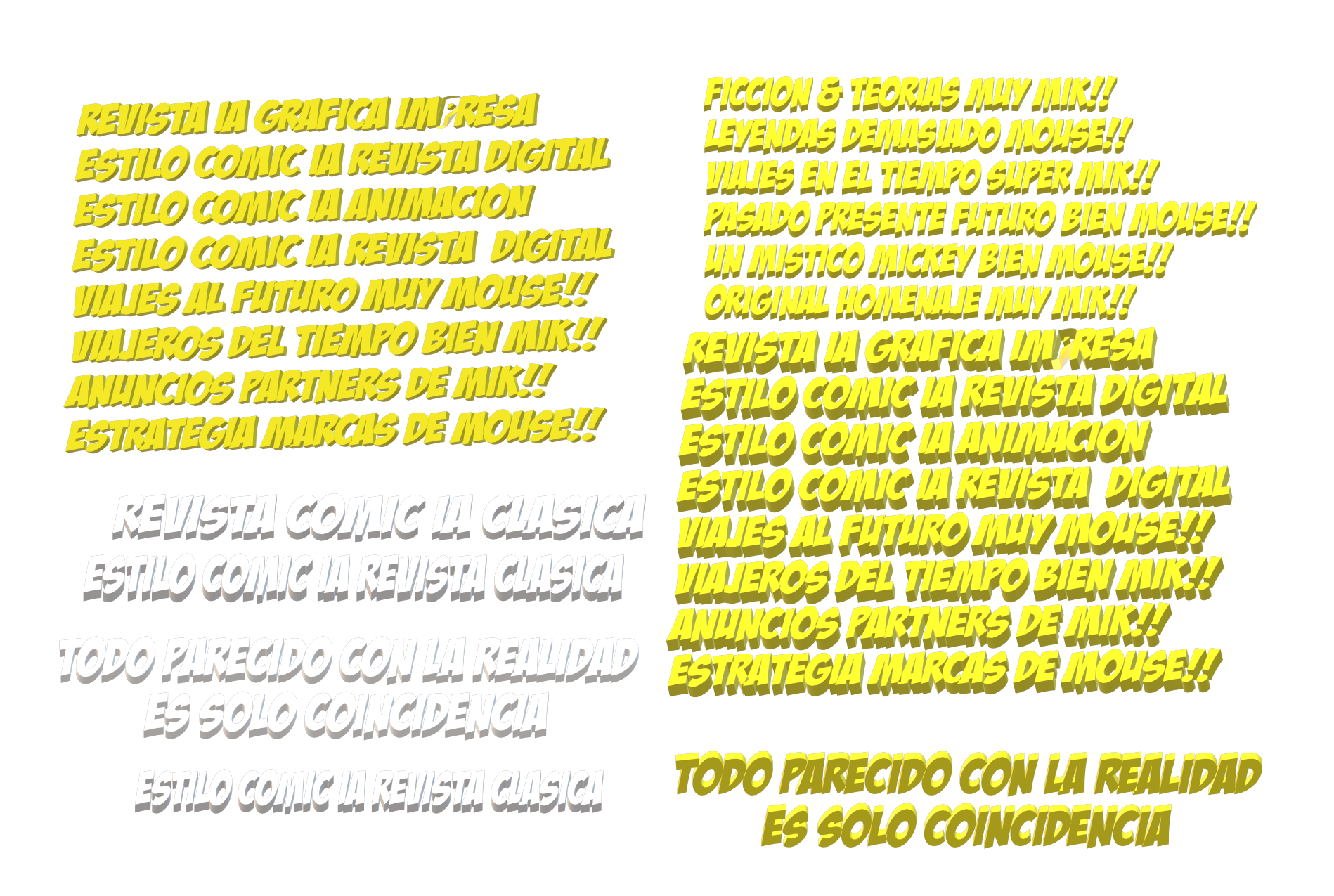 En este Comic IA de "Mik Mouse" creado como historia paralela de su dominio público "Steamboat Willie" respeté al pie de la letra NO tocar la idea conceptual inicial de este Cortometraje de Disney que tenia un Mickey Mouse un poco desarreglado, sin ideas claras en argumento creativo infantil y sin la instancia de persuasión que sin dudas es la mas atractiva del ratón mas famoso del mundo, en este proyecto he tratado de releer la sugestión mercantil del dominio público de Mickey desde el Formato Cómic IA y me conecto con algunas practicas bien novedosas implementadas en el área comercial y publicitaria de este "Ratón Mickey".